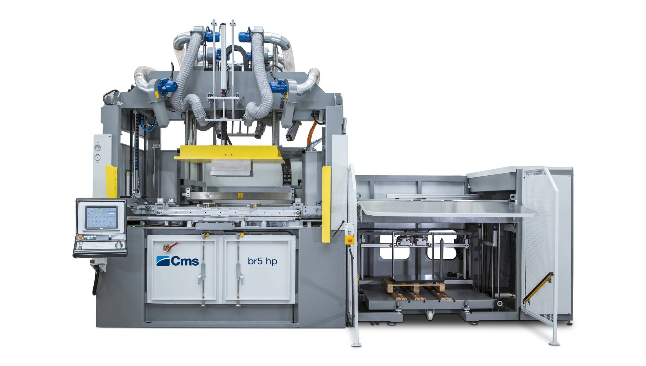 Řada br5hp – termoformovací stroje s manuálním nebo automatickým zakládáním fólie – se vyznačuje mimořádně inovativním systémem manipulace s dílci. Zakládání tvarovaného materiálu, samotné tvarování, seřízení stroje i odebírání hotových výrobků probíhá automaticky. Rychlovýměnné vybavení, kompletní diagnostika, možnost síťového propojení a schopnost pracovat s vakuem i tlakem, a to i na horním stole, činí řadu BR5HP absolutním referenčním standardem v oblasti termoformování.